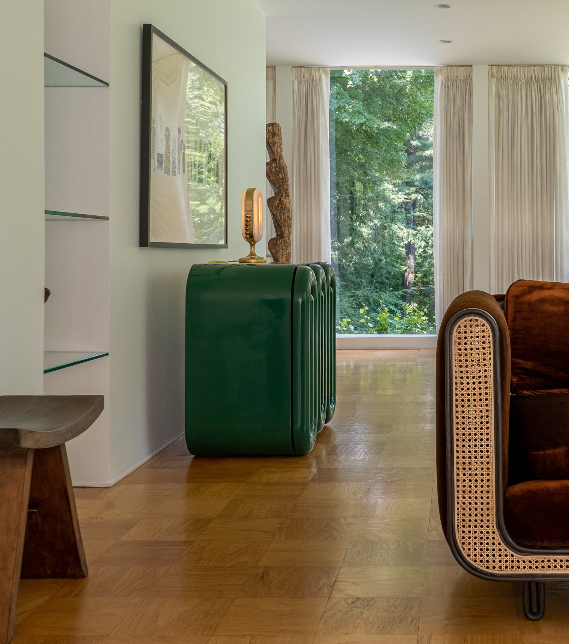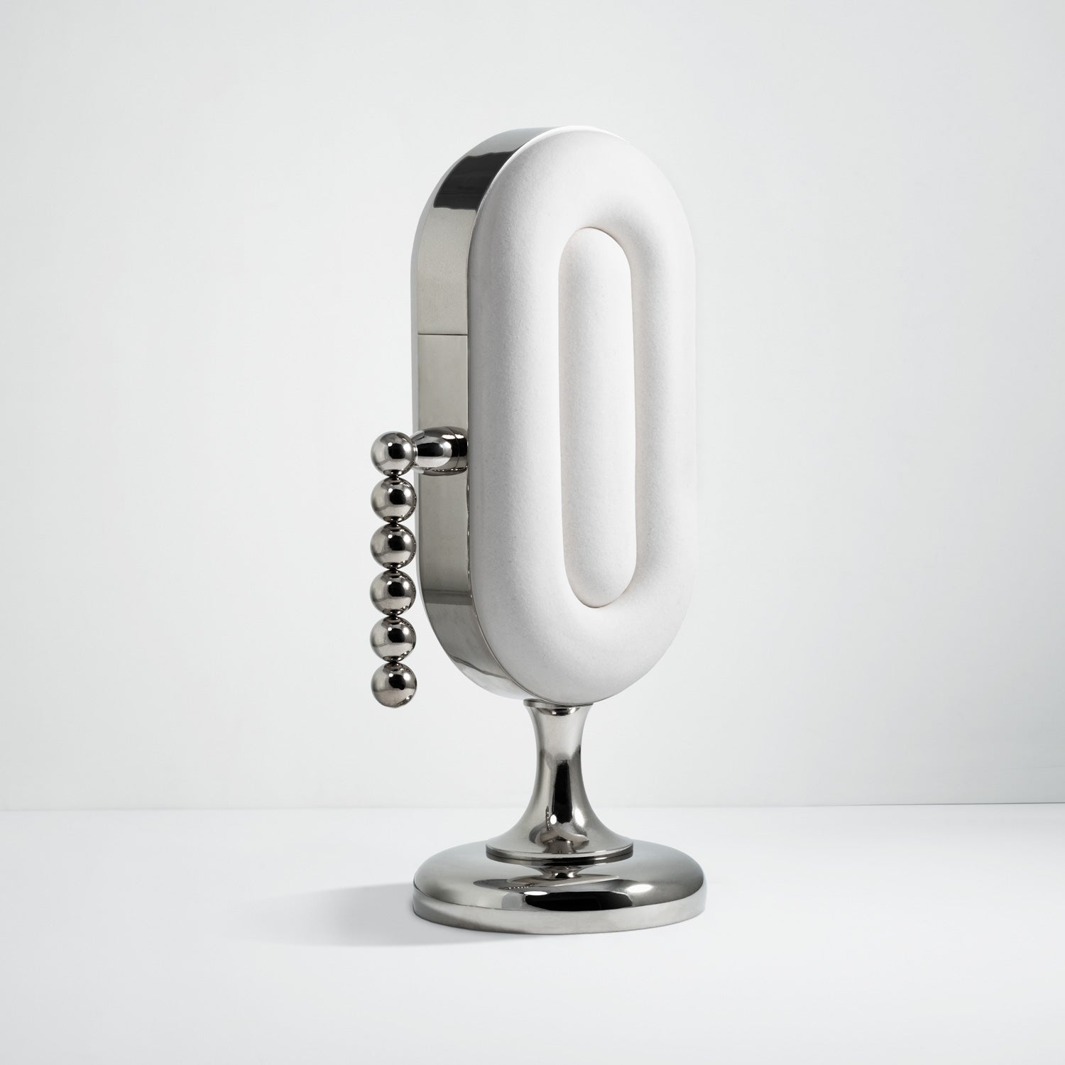 The Nº153 Surface Lamp is comprised of a solid brass frame, porcelain slip-cast lenses and a grand pull chain. Illumination is effected by a light-emitting diode. Manufactured to order in Manhattan. Contact sales for current lead-time.